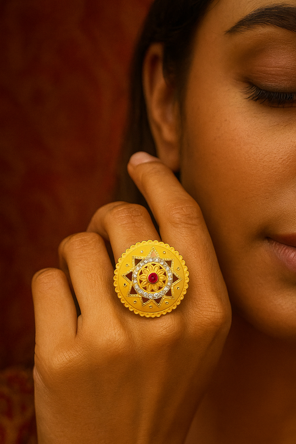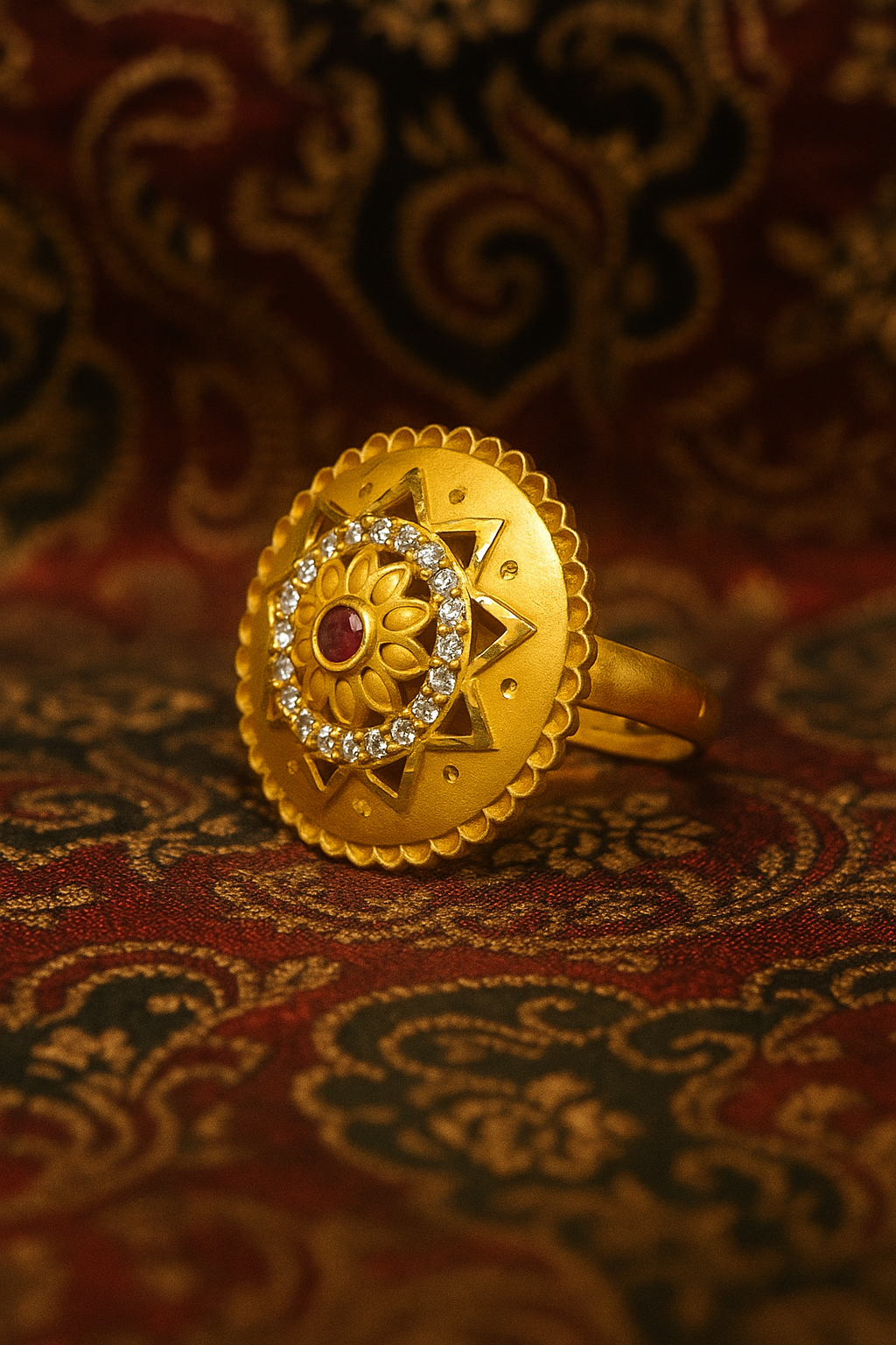 Anti-Tarnish Antique-Inspired Gold Tone Sunburst Ring