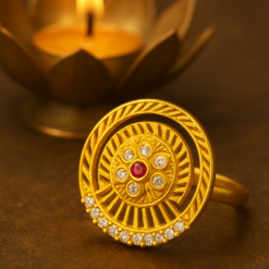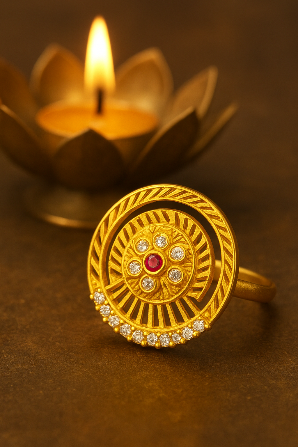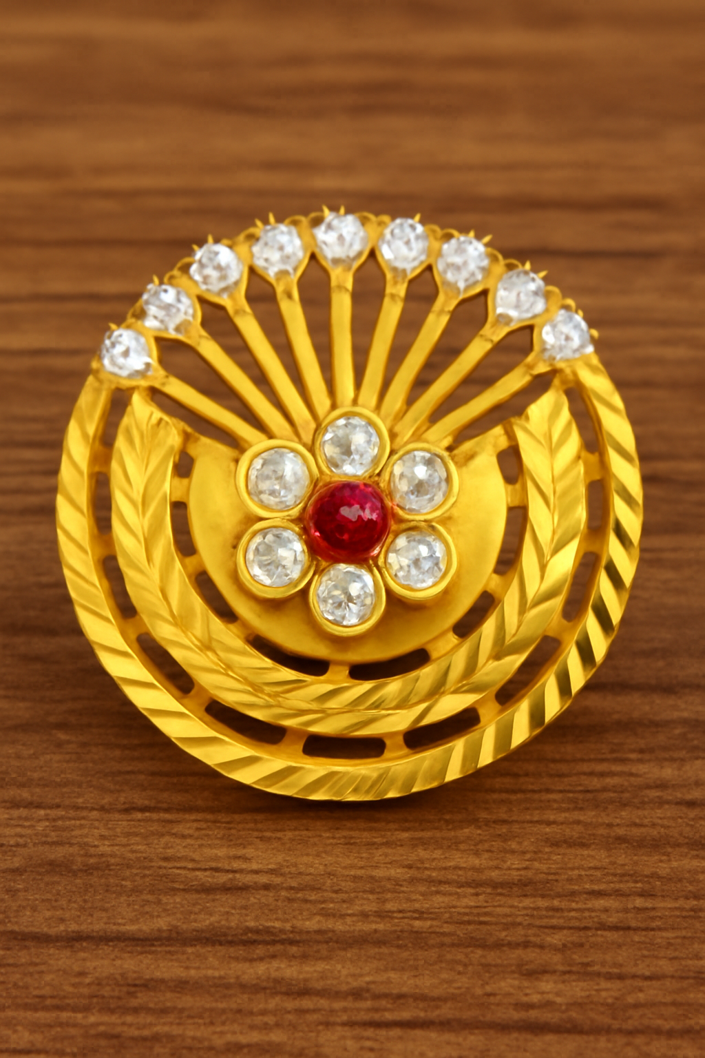 Anti-Tarnish Circular Floral Ruby-CZ Gold-Tone Statement Ring