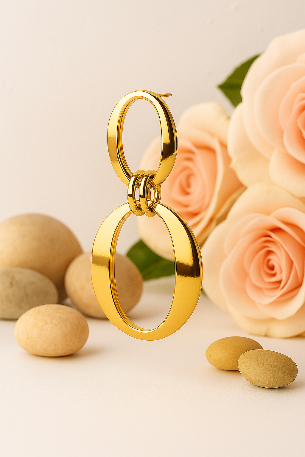 The Anti-Tarnish Double Circle Drop Earrings in gold offer a sleek, contemporary twist on a classic silhouette. Featuring two interlinked polished circles in graduating sizes, they create a harmonious balance of movement and shine. Expertly crafted with premium gold finish and an anti-tarnish finish, these earrings maintain their radiant luster wear after wear. Lightweight yet striking, they are perfect for elevating both everyday ensembles and evening looks.