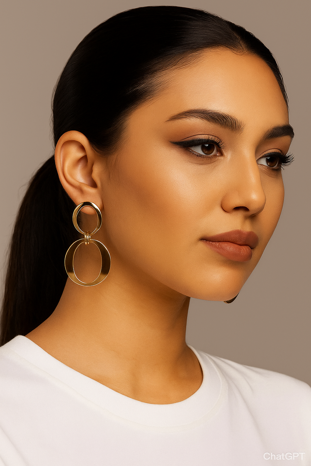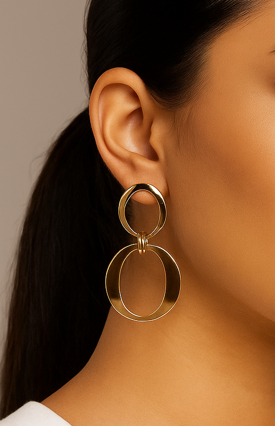 Anti-Tarnish Double Circle Drop Earrings – Gold Finish