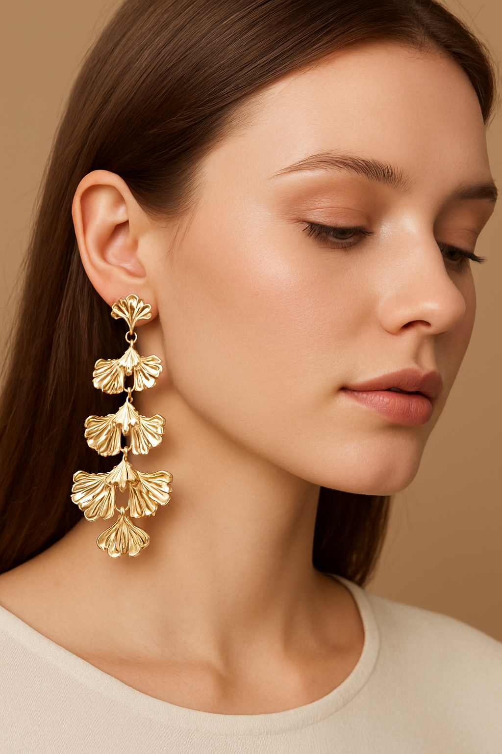 Anti-Tarnish Ginkgo Cascade Statement Earrings