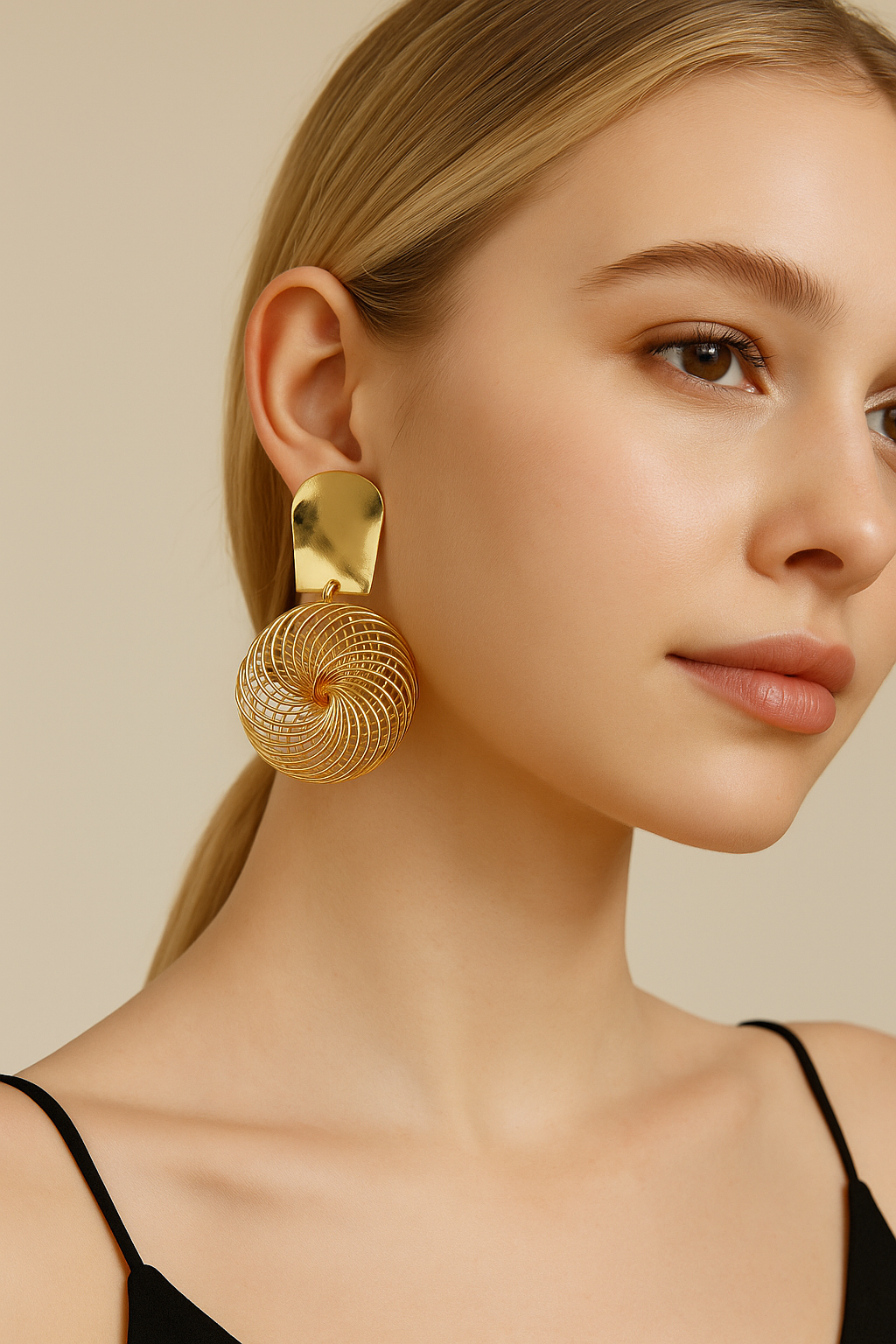Step into the spotlight with the Anti-Tarnish Golden Infinity Swirl Statement Earrings, a dazzling fusion of artistry and elegance. Featuring a unique concentric swirl mesh design, these earrings radiate sophistication while catching the light from every angle. The anti-tarnish gold plating ensures your earrings maintain their radiant shine for years, making them the perfect blend of beauty and durability. Ideal for special occasions or elevating everyday outfits, they’re a true statement of style.