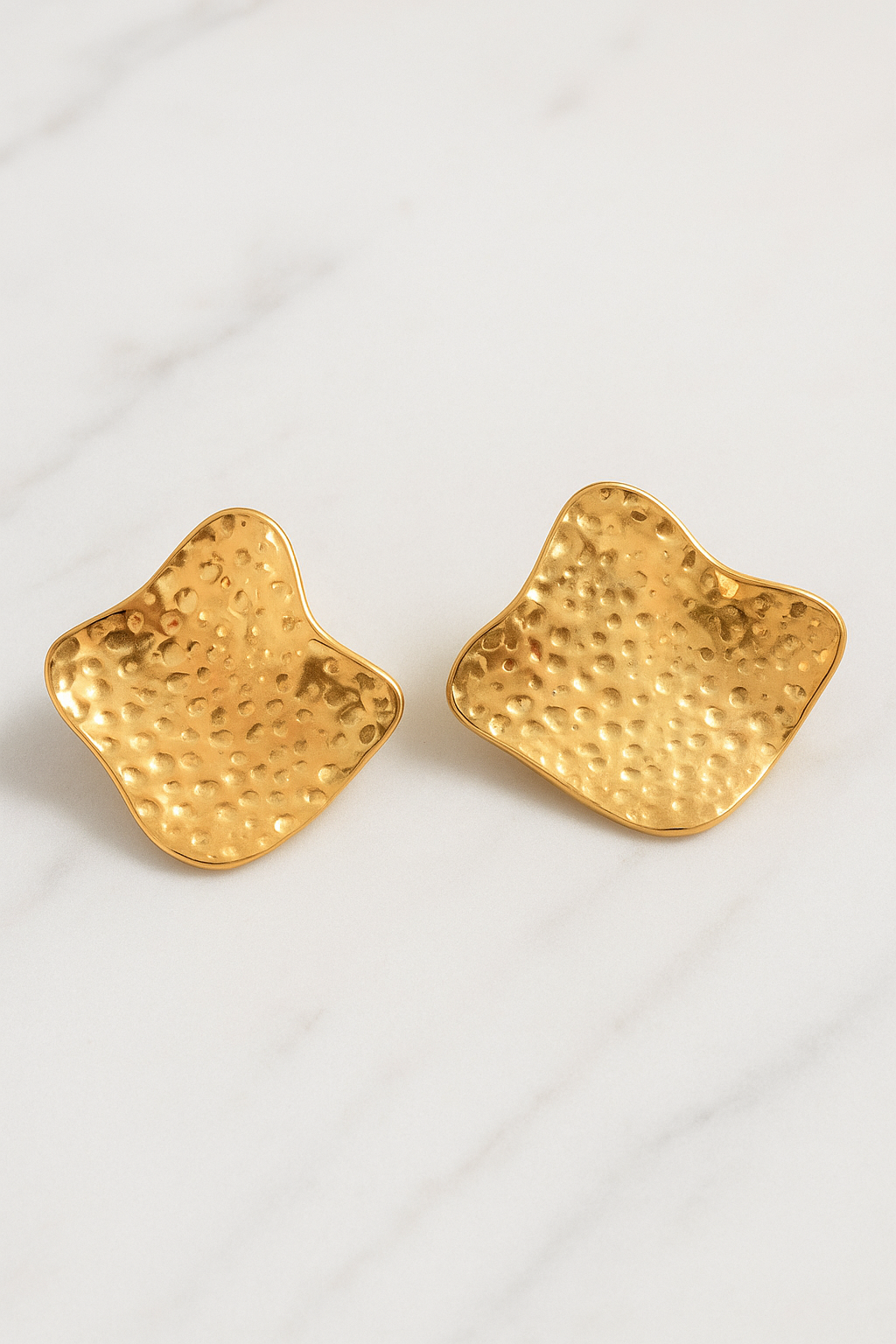 Anti-Tarnish Hammered Wave Stud Earrings – Gold