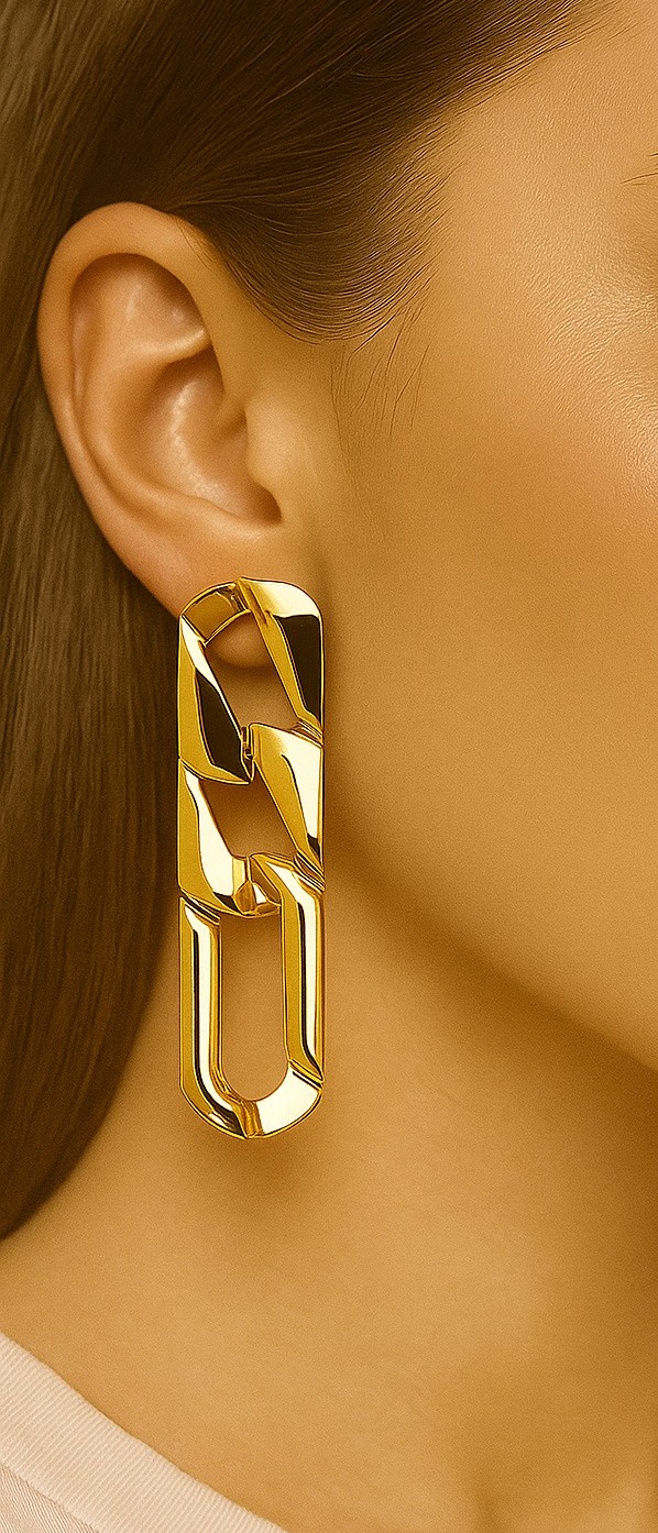Anti-Tarnish Polished Chain-Link Statement Earrings – Gold Finish