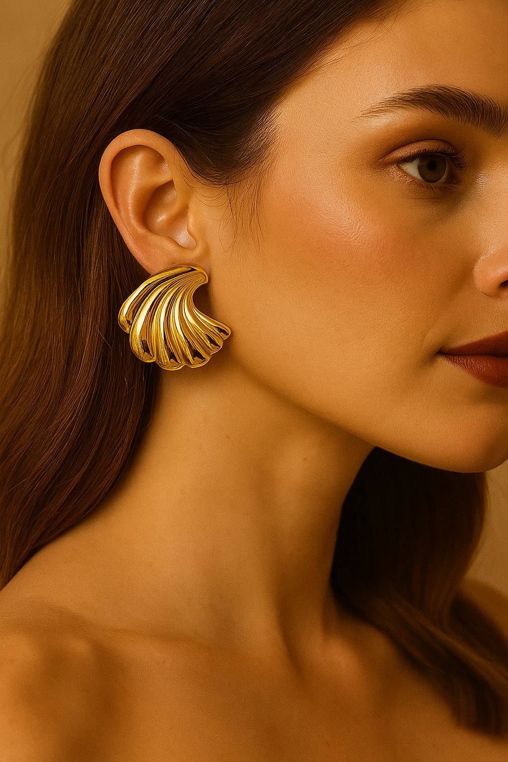 Anti-Tarnish Sculpted Shell Stud Earrings – Gold