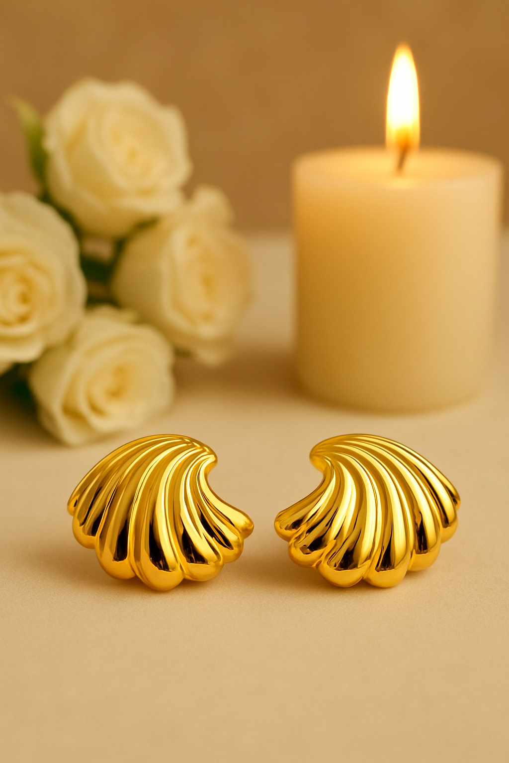 The Anti-Tarnish Sculpted Shell Stud Earrings in gold finish are a stunning blend of ocean-inspired design and modern elegance. Shaped like delicate seashells with smooth, curved ridges, they radiate a rich, polished glow that catches the light from every angle. Expertly crafted with premium gold plating and a protective anti-tarnish coating, these earrings offer long-lasting shine and durability. Perfect for adding a touch of coastal glamour to casual outfits or complementing sophisticated evening wear with timeless charm.