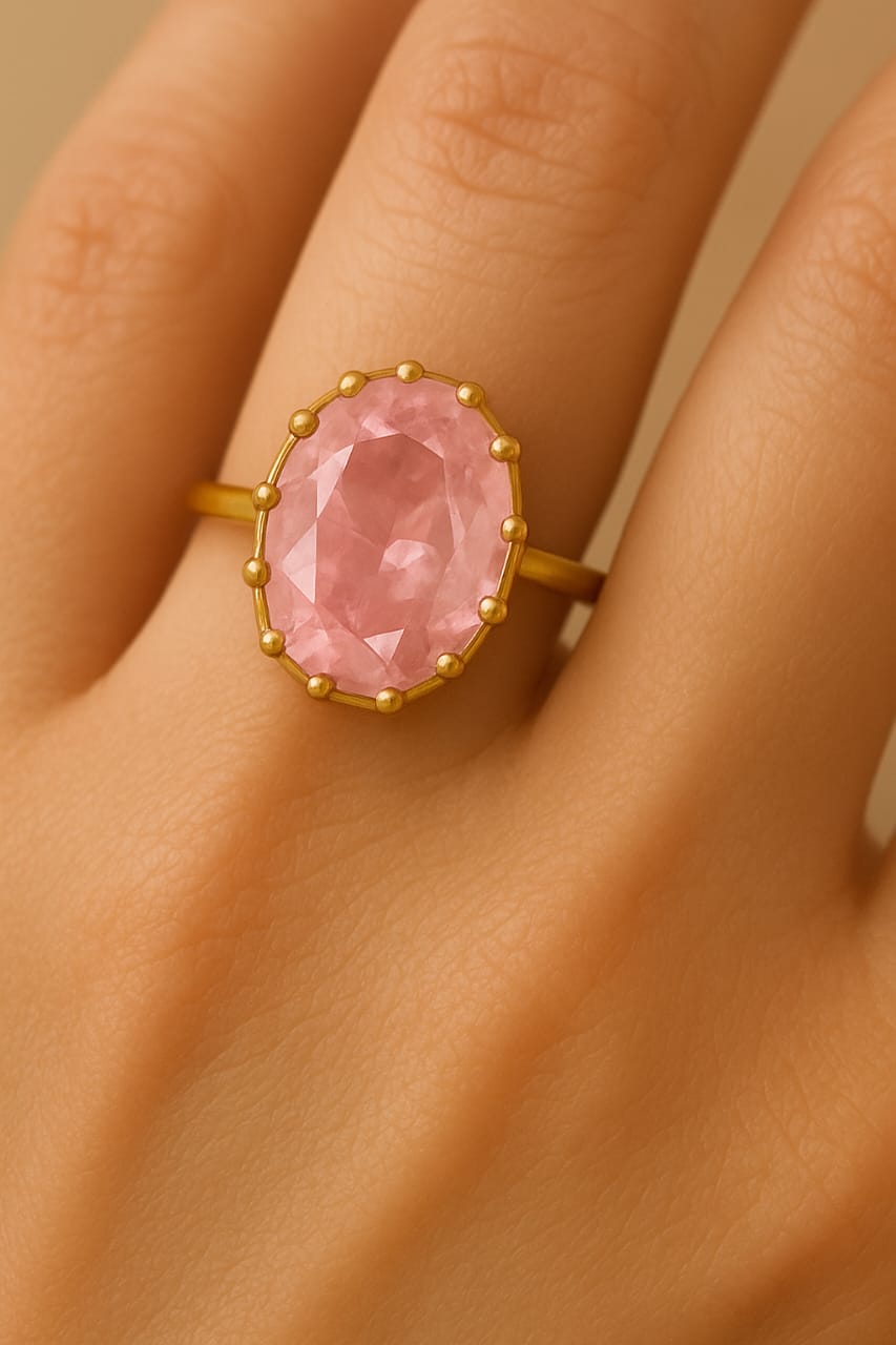 Anti-Tarnish Shiny Rose Pink Oval Ring – Gold-Tone