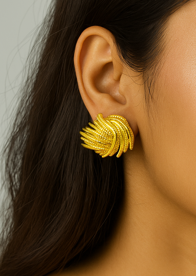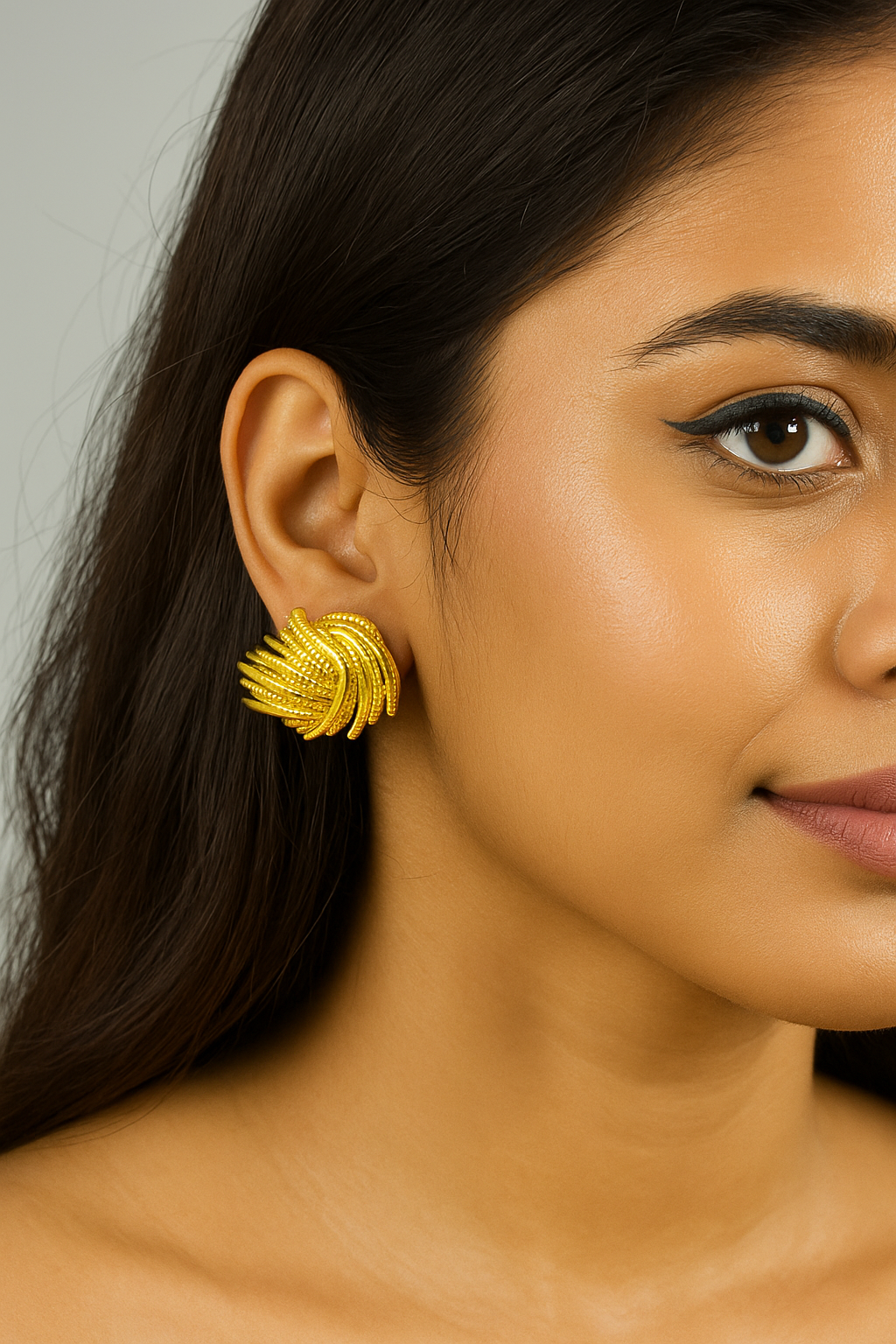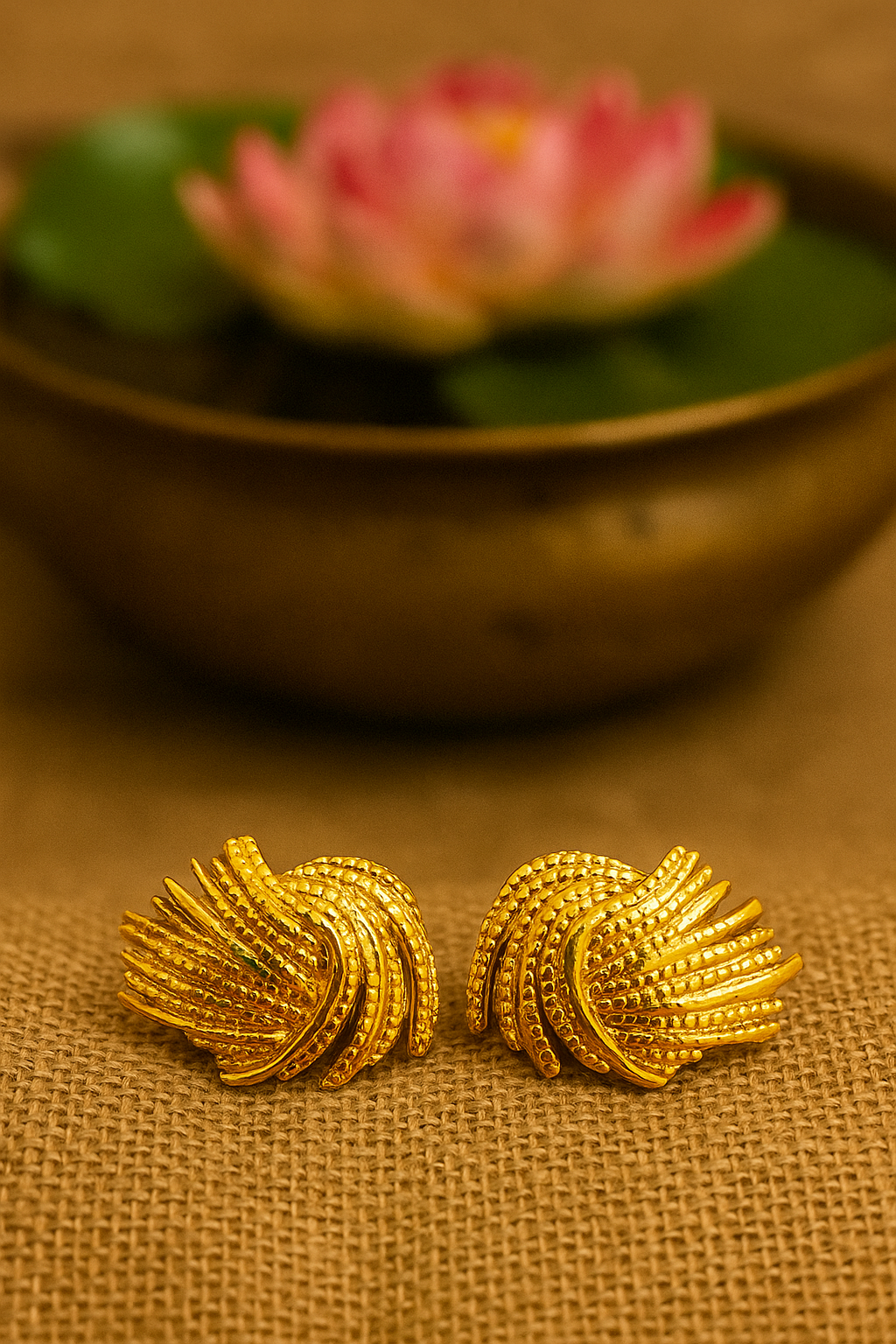 Anti-Tarnish Textured Spiral Stud Earrings – Gold Finish